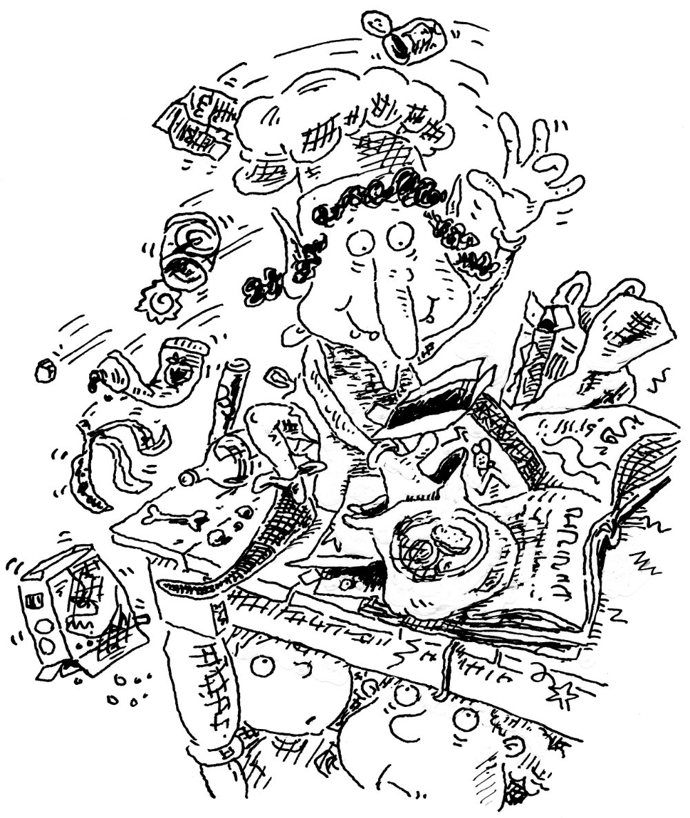 So now I knew how the stew was made and what was in it, I just had to work out why the goblins were making it and whose kitchen they were going to ransack. The story would be more dramatic if the kitchen was well-stocked, so I decided that the goblins would invade the home of a cookery writer . And I wanted one of the main characters to be a child, so I gave the writer a grandson – Jake – who was also a keen cook.